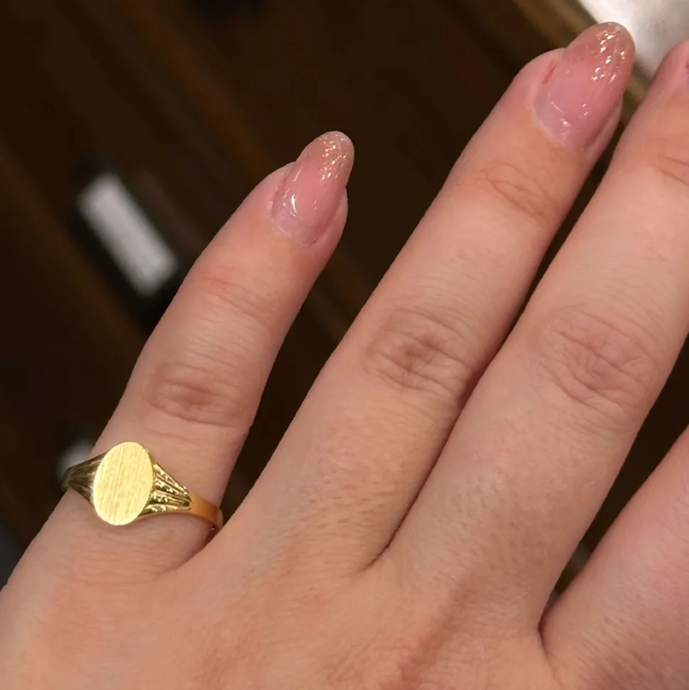Den blanka och matta ytan på guldet skapar en vacker kontrast som fångar ljuset på ett subtilt och intressant sätt. Ringen är perfekt för den som söker en diskret men samtidigt unik smycke som passar till alla tillfällen.